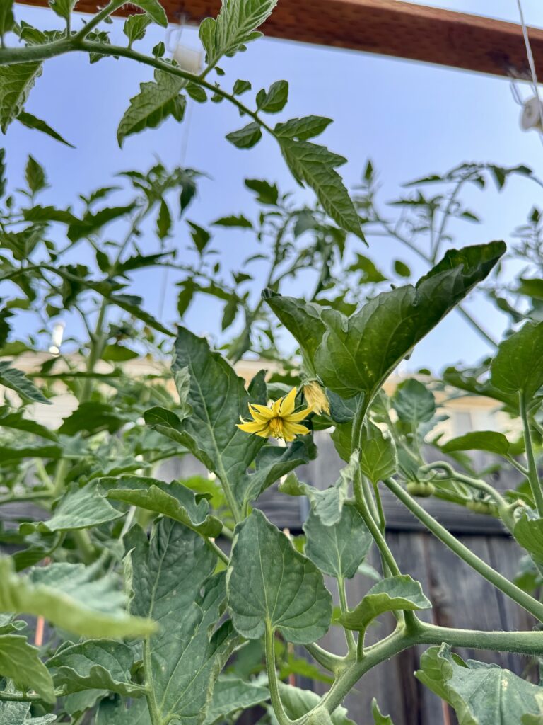 Tomato flowers need to vibrate for at least 10 to 15 seconds total on a given day to achieve pollination. This doesn’t have to happen all at once – even a few brief gusts spread throughout the day can work.
