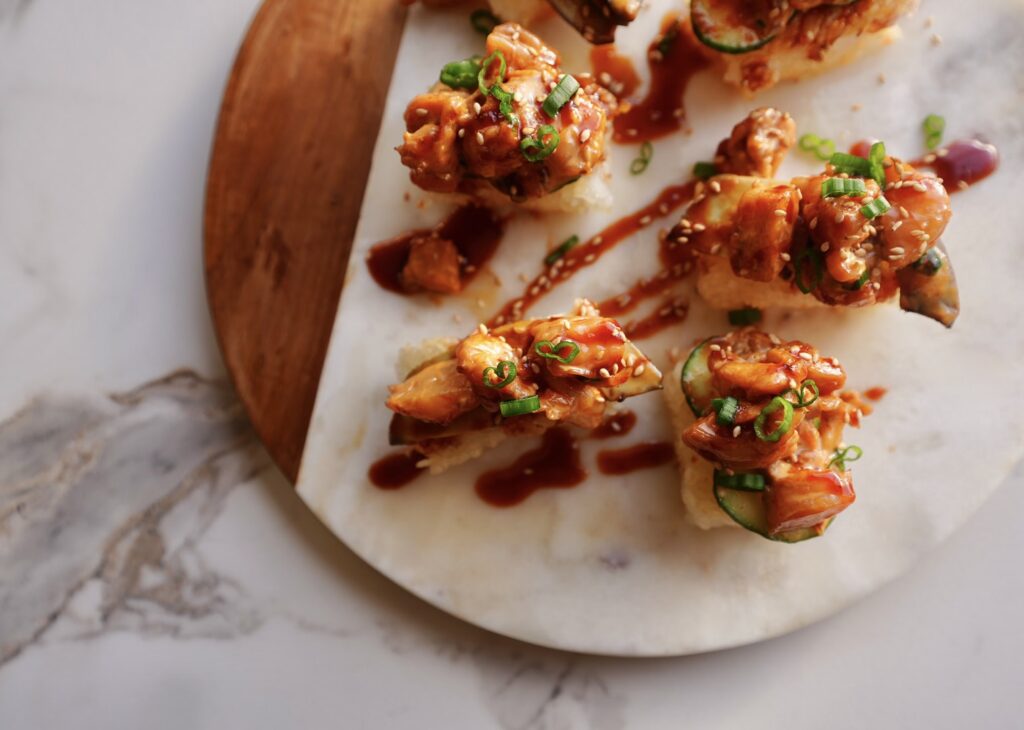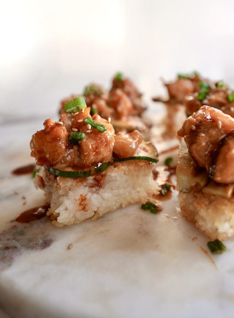 Crispy Sushi Rice Bites with Spicy Sriracha Mayo Shrimp