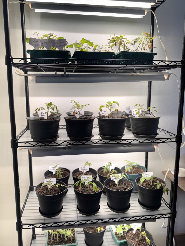 Grow Light(s): Grow lights are only essential if you live in a climate where you need to start your seeds indoors and need supplemental light. I start my tomato seeds indoors in March because it’s still below freezing at night here in Utah, but I want them to produce fruit by July.