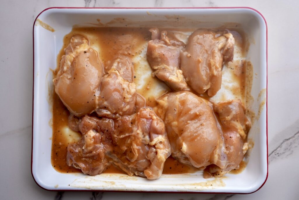 - Add the chicken to the marinade and toss until fully coated. Cover and marinate for at least 30 minutes, or up to 24 hours in the refrigerator for deeper flavor.