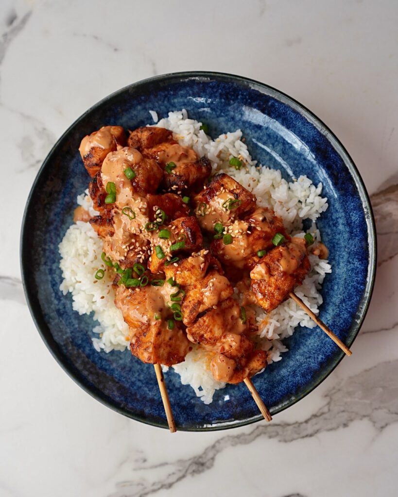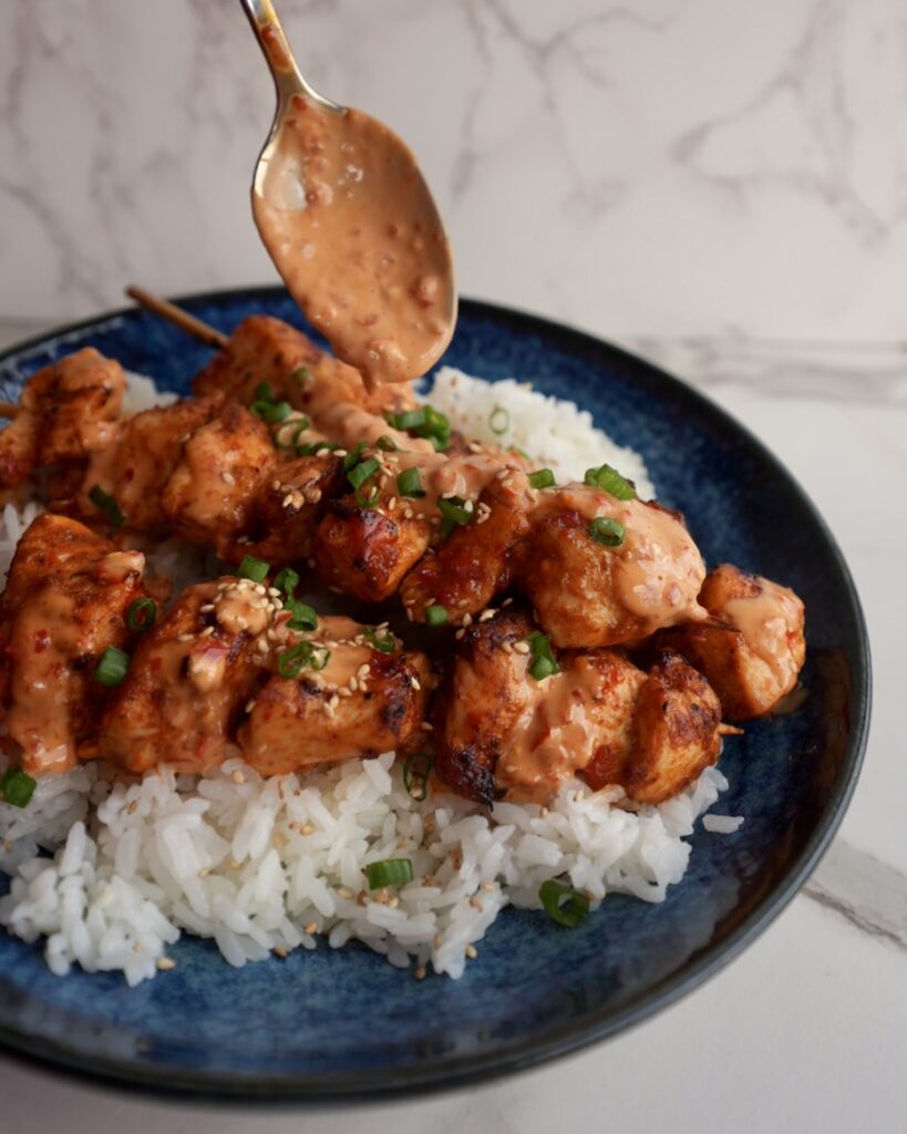 Healthy Air Fryer Chicken Skewers with Bang Bang Sauce
