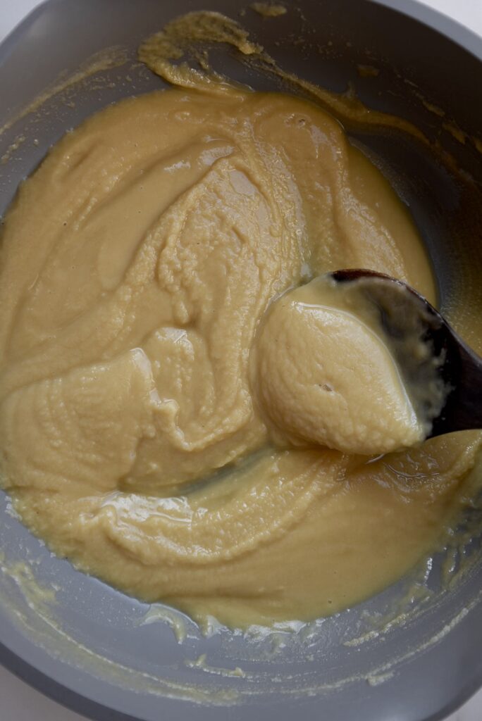 1. In a pan over medium heat, melt the butter completely. Add the flour and stir continuously until fully combined.
