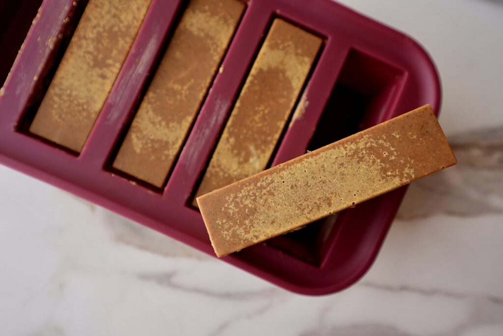 For this recipe, I like to use silicon molds for portioning (mine is from Souper Cubes), but you can most definitely use a Tupperware lined with parchment paper too!