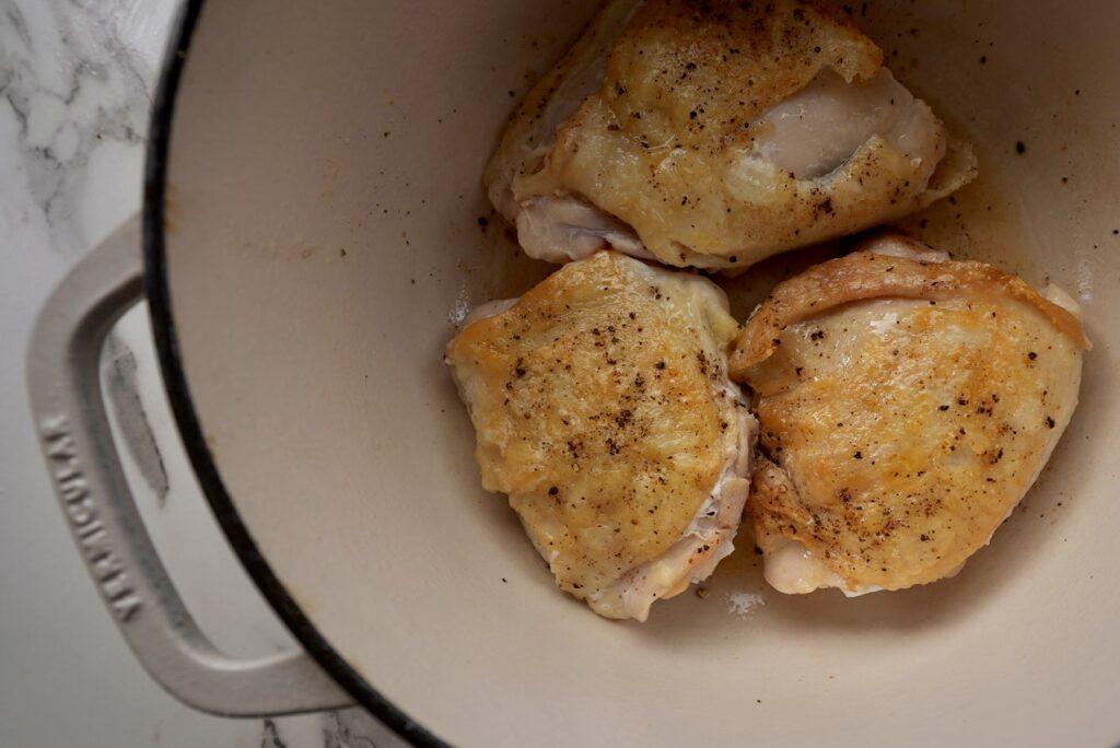 - Heat oil in a large pot over medium-high heat, then sear chicken for 4-5 minutes per side until golden brown. Remove and set aside.