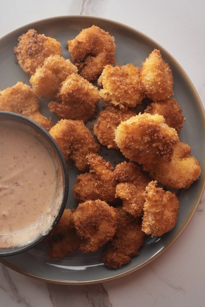 The shrimp themselves are just as flexible as the sauce. You can fry them for that ultra-crispy, restaurant-style bite, or bake them when you’re in the mood for something a little lighter. Either way, popcorn shrimp cook quickly and stay tender. Makes this a great option for weeknight dinners, game-day snacks, or an easy crowd-pleasing appetizer!
