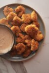 A lighter, high-protein take on popcorn shrimp, served with a creamy three-ingredient Bang Bang-style dipping sauce and cooked either fried or baked to suit your mood.