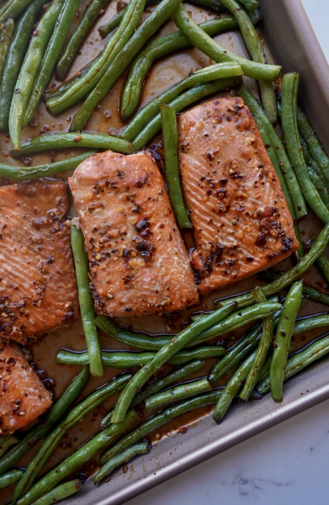 Placing the green beans underneath the salmon is the move! They soak up the extra marinade as everything cooks, turning into a flavorful side rather than an afterthought. The same sweet-spicy sauce that coats the salmon also infuses the beans. It’s a true one-pan meal where nothing goes to waste.