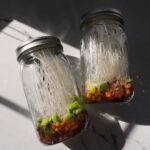 8. Pour just enough boiling water into the jar to barely cover the vermicelli noodles. Cover the jar loosely (do not seal it with the lid to prevent cracking) and let it sit for about 10 minutes, or until the noodles are soft and fully cooked.