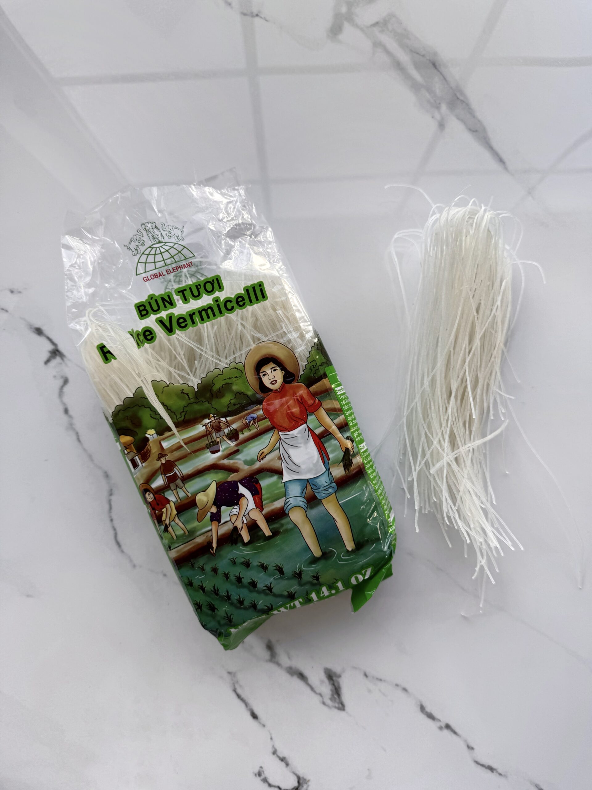 Rice vermicelli noodles are thin, delicate noodles made from rice flour and water, commonly used in various Asian cuisines. They have a soft, slightly chewy texture once cooked and are perfect for absorbing flavors from broths, sauces, and stir-fries. These noodles are quick to prepare, often needing just a brief soak in hot water before being added to dishes. They’re commonly featured in soups like pho, salads, and dishes like stir-fried noodles or spring rolls.
