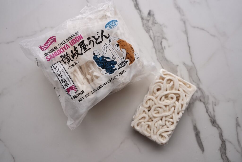For the best texture, I recommend fresh or frozen udon. They’re thicker, softer, and have that signature chewy bounce. Dried udon works in a pinch, but the texture won’t be quite as tender and springy.